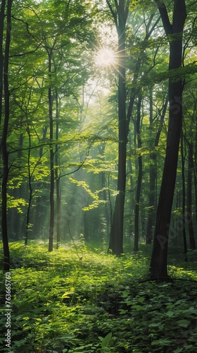 © CREATIVE STOCK, Obraz premium Beautiful green summer forest. Spring background, backdrop. Forest Illsutration