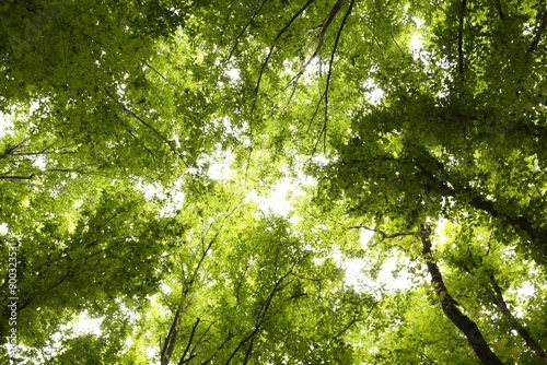 © New Africa, Fototapeta premium Beautiful green trees in forest, bottom view