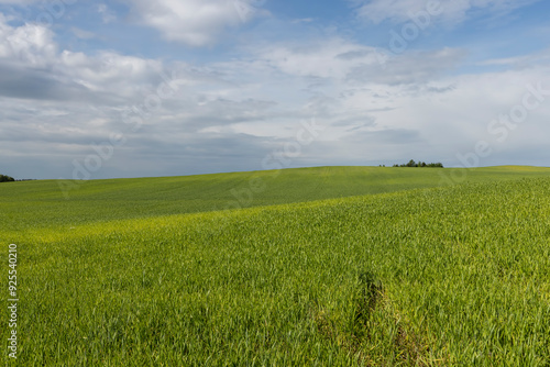 Fototapeta premium beautiful green wheat sprouts in sunny weather