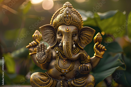 © Olegarx525, Fototapeta premium Beautiful greeting card with bright holiday composition for happy celebrate Ganesh Chaturthi