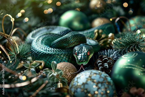 © Olegarx525, Fototapeta premium Beautiful greeting card with holiday composition for happy and joy celebrate New Year