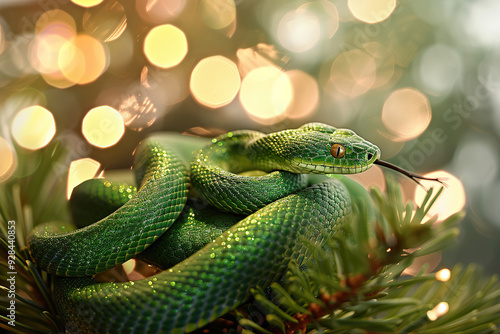 © Olegarx525, Fototapeta premium Beautiful greeting card with holiday composition for happy and joy celebrate New Year