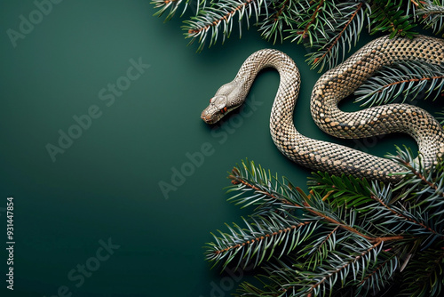 © Olegarx525, Fototapeta premium Beautiful greeting card with holiday composition for happy and joy celebrate New Year