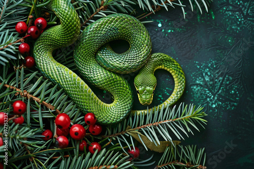 © Olegarx525, Fototapeta premium Beautiful greeting card with holiday composition for happy and joy celebrate New Year