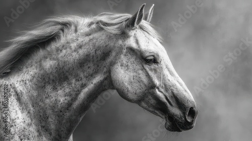 Obraz premium Beautiful grey horse profile captured in black and white with soft background...