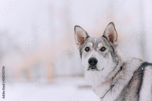 Fototapeta premium beautiful grey mixed breed dog portrait outdoors in winter