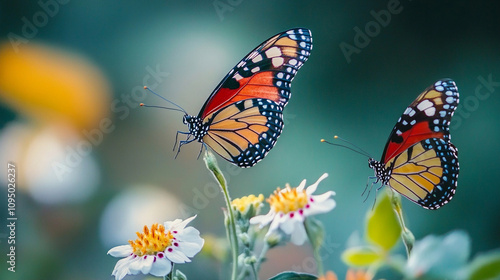 © rafliand, Obraz premium beautiful group of butterfly summer background with flower