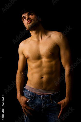 © cristovao31, Fototapeta premium Beautiful guy with strong and sexy body on black background