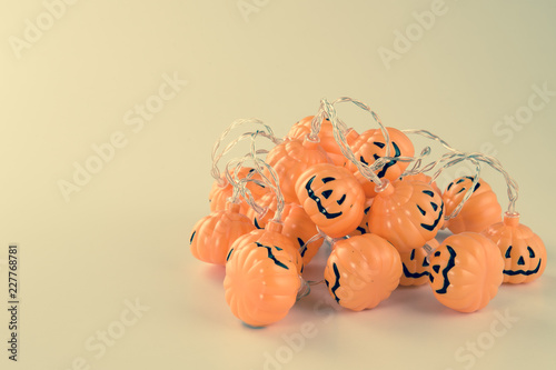 Fototapeta premium Beautiful halloween decoration trick or treat on white background with filter, concept of halloween party, copy space(text space), close-up, blank for text
