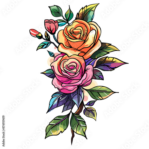 © whitecityrecords, Obraz premium Beautiful hand drawn watercolor rose flower bouquet. Vector illustration