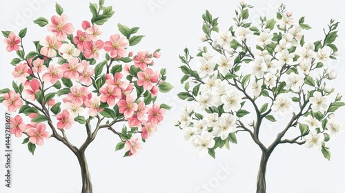 © Benzbutter, Fototapeta premium Beautiful hand-painted illustration of pink and white flowering trees against a light background