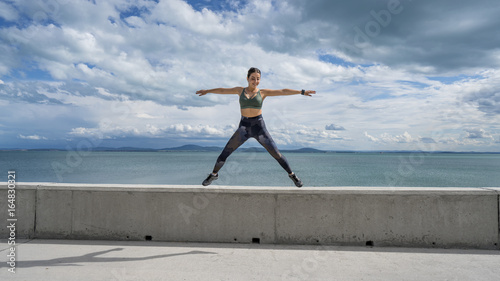 Obraz premium beautiful happy girl jumping on the beach