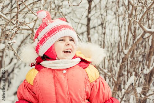 Obraz premium Beautiful happy kid in the red jacket