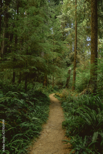 © Nicholas Steven, Fototapeta premium Beautiful hiking trail path through lush green forest