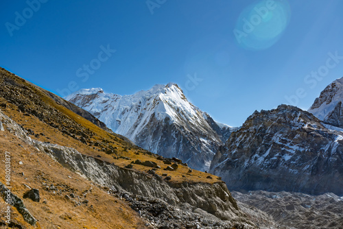 Fototapeta premium Beautiful Himalaya Views on the way to Pangpema during Kanchenjunga North...