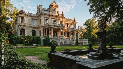 © Tuachan, Obraz premium Beautiful Historic Mansion Surrounded by Lush Green Landscape