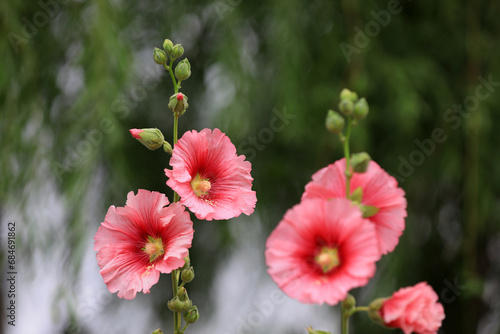 © zhang yongxin, Obraz premium Beautiful hollyhock flowers in the park