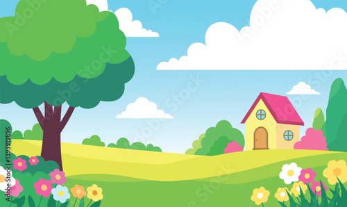 © jongjawi, Fototapeta premium Beautiful Home House Building with Colorful Flowers Floral Garden Park Yard Landscape in Summer