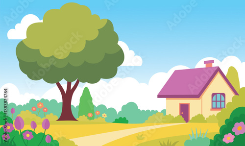 © jongjawi, Fototapeta premium Beautiful Home House Building with Colorful Flowers Floral Garden Park Yard Landscape in Summer
