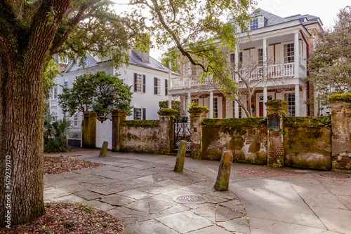 Fototapeta premium Beautiful homes on Church Street in the historic part of downtown Charleston,...