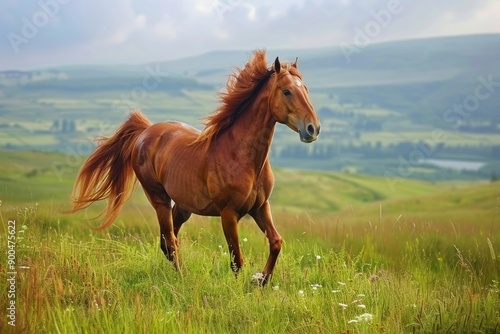 © Dzikrul Husnani, Obraz premium Beautiful horse on a green meadow, ai