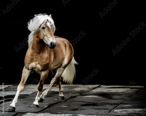 © Pippa, Fototapeta premium Beautiful horse running against black background