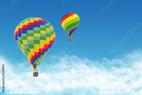 © mirexon, Naklejka premium Beautiful Hot Air Balloons against a deep blue sky.