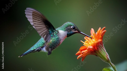 Fototapeta premium Beautiful Hummingbird Drinking Nectar from a Flower
