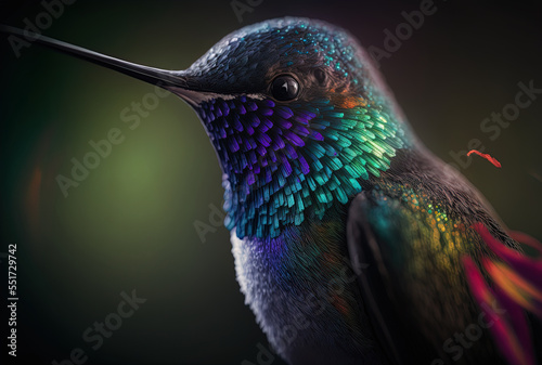 © AkuAku, Obraz premium Beautiful hummingbird in close up perched on a light. Generative AI
