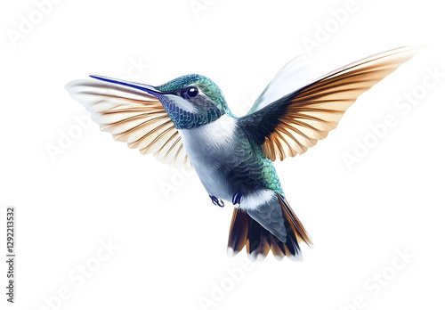 Fototapeta premium Beautiful Hummingbird in Flight on white background . AI generated Illustration.