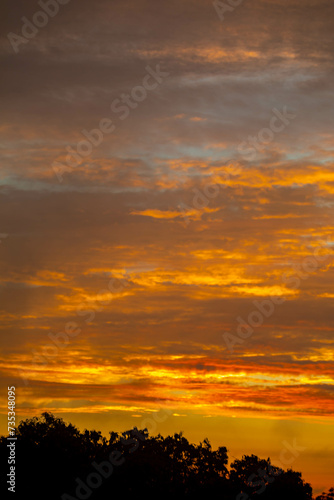 © Adilson, Fototapeta premium Beautiful idyllic sky at dawn with strong yellow and orange colors