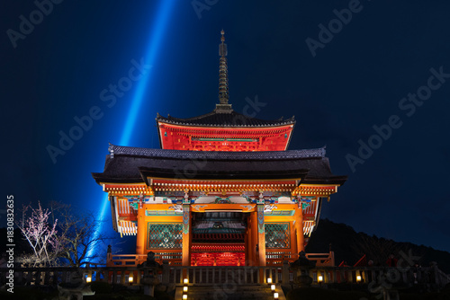 Fototapeta premium Beautiful illuminated Kiyomizu-dera temple meaning Pure water temple, at...