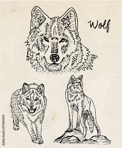 Fototapeta premium Beautiful illustration of wolf on vintage background