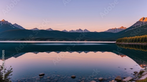 Fototapeta premium beautiful illustratration photograph or batch lake sunset . guess composure...