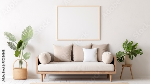 Fototapeta premium beautiful interior design furniture with mockup poster artwork with border frame interior house template for your design clean minimalist style decoration home interior background ideas
