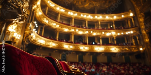 Fototapeta premium Beautiful interior of an opera house with ornate balconies and red velvet seats.