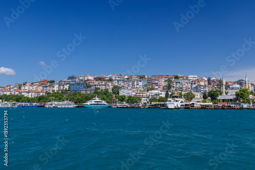 Fototapeta premium Beautiful Istanbul cityscape view from cruise sailing to Bosphorus,Turkey
