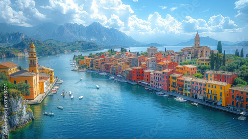 © Novanture, Fototapeta premium beautiful italy landscape scene for holiday created with Generative AI technology
