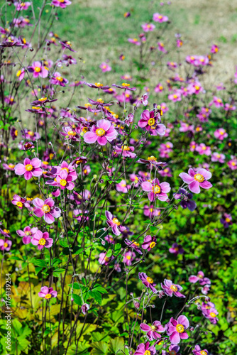 Naklejka premium Beautiful Japanese anemone diana flower blooming in the garden.