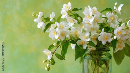 Fototapeta premium Beautiful jasmine flowers in a glass vase