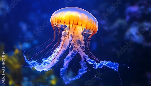 © Creative Tara, Naklejka premium Beautiful jellyfish in the sea. Jellyfish in the ocean.