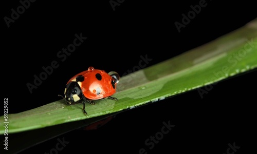 © Africa Studio, Fototapeta premium Beautiful ladybird on green grass, isolated on black