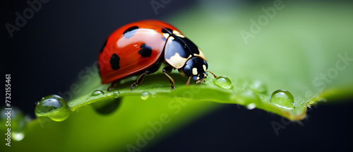 Obraz premium beautiful ladybug walking on a leaf on a spring day