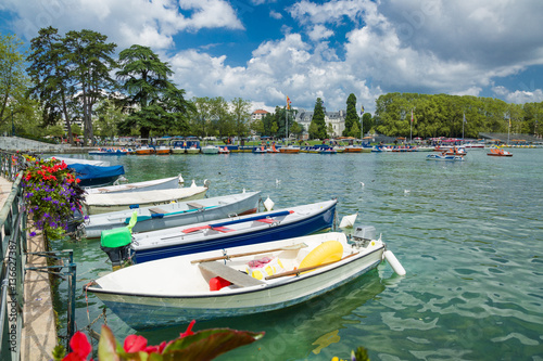 Naklejka premium beautiful lake and boats in annency city