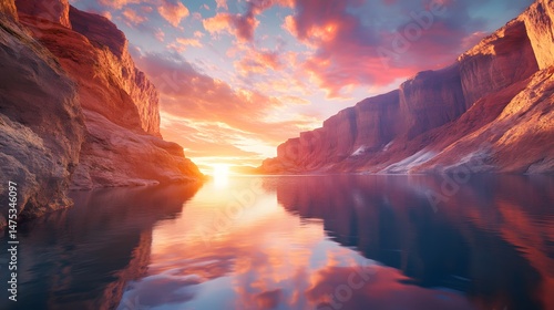 Fototapeta premium Beautiful lake powell arizona landscape sunset reflection travel destination...