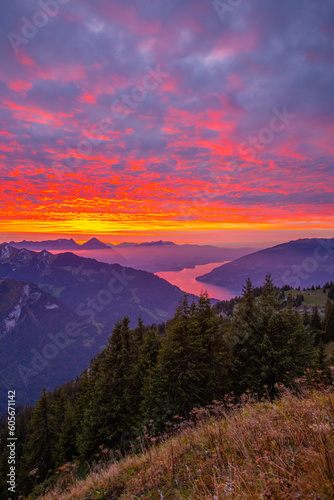 Obraz premium Beautiful Lake Thun view from Schynige Platte trail in Bernese Oberland,...
