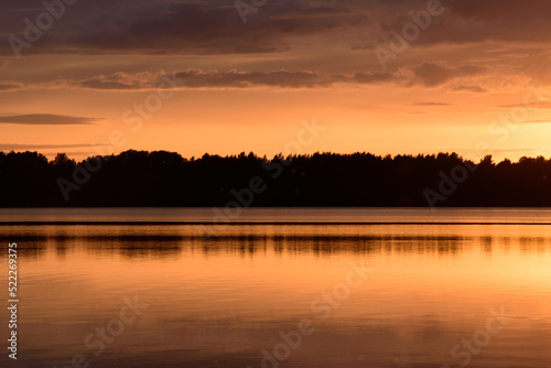 © Aivis, Fototapeta premium .beautiful lake view in windless time with green reeds on cloudy summer day sunset evening