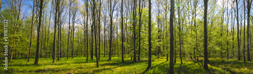 Fototapeta premium Beautiful landscape at a green forest under the sunlight in Germany