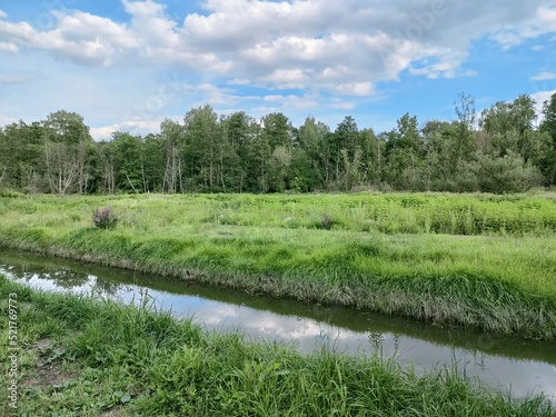 Fototapeta premium beautiful landscape field forest river and clouds