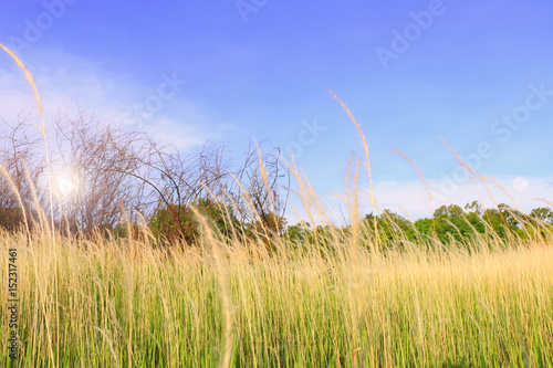 © wacharaklin, Obraz premium Beautiful landscape flower grass field under the beautiful sky background